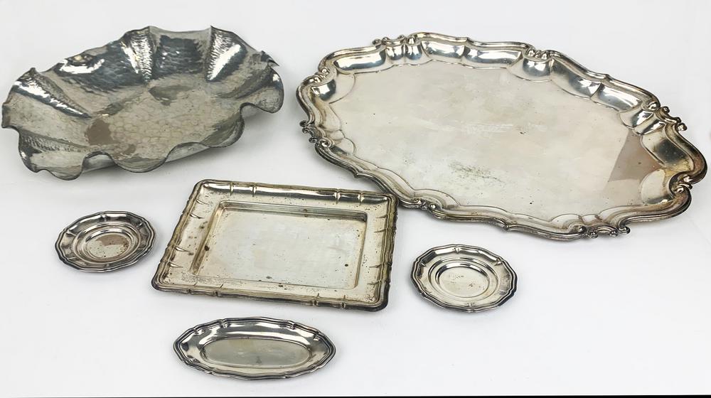 LOTTO COMPOSTO DA VARI OGGETTI ARGENTO E IN METALLO ARGENTATO vassoio, 3...