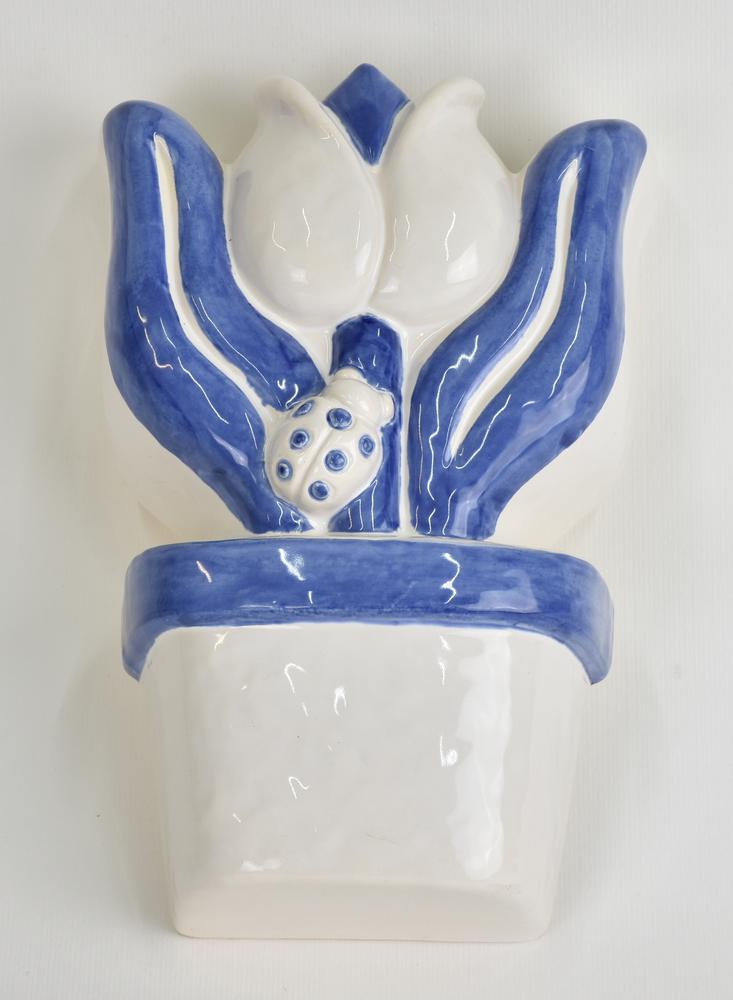 con decorazione a tulipano e coccinella bianca e blu