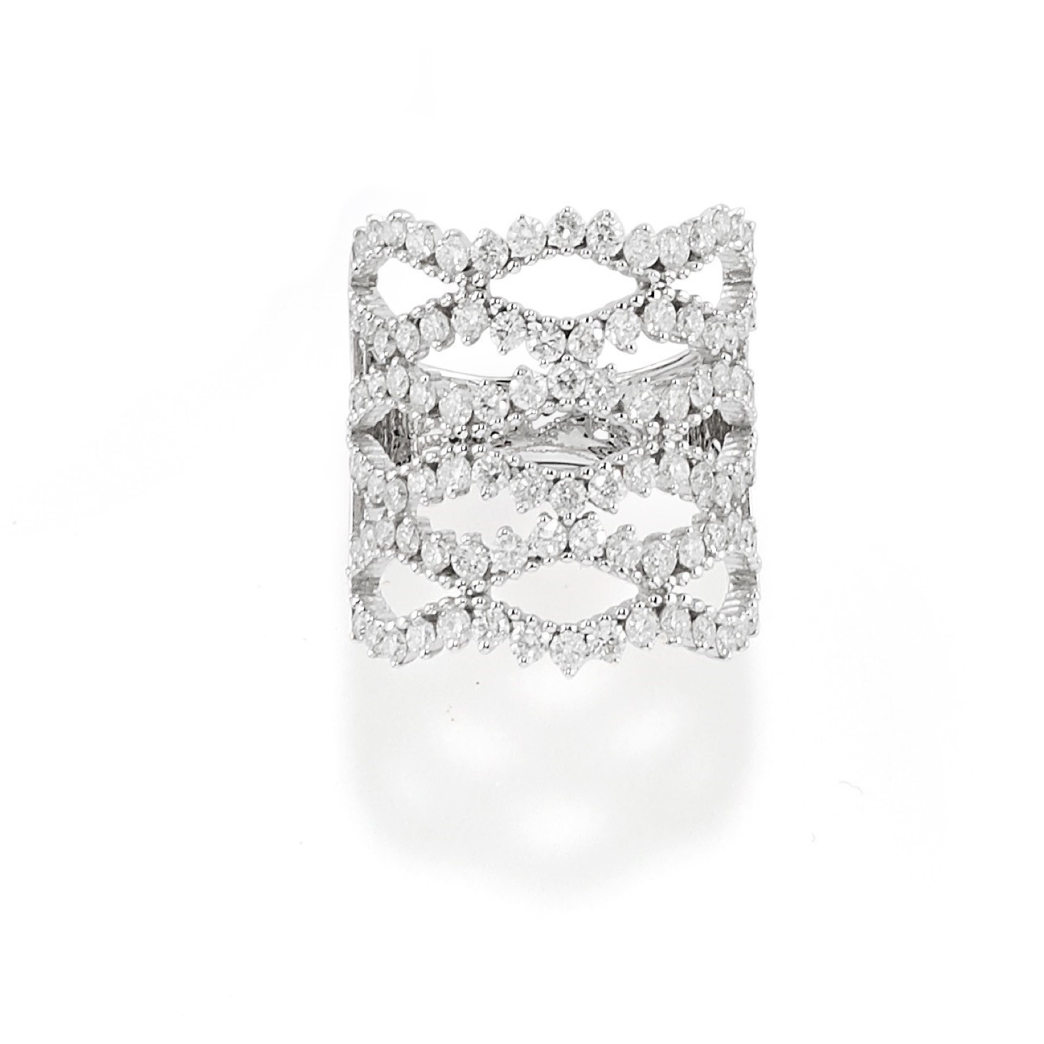 in oro bianco 18K e diamanti taglio brillante ct 2,00 ca, realizzato a sei linee mosse.