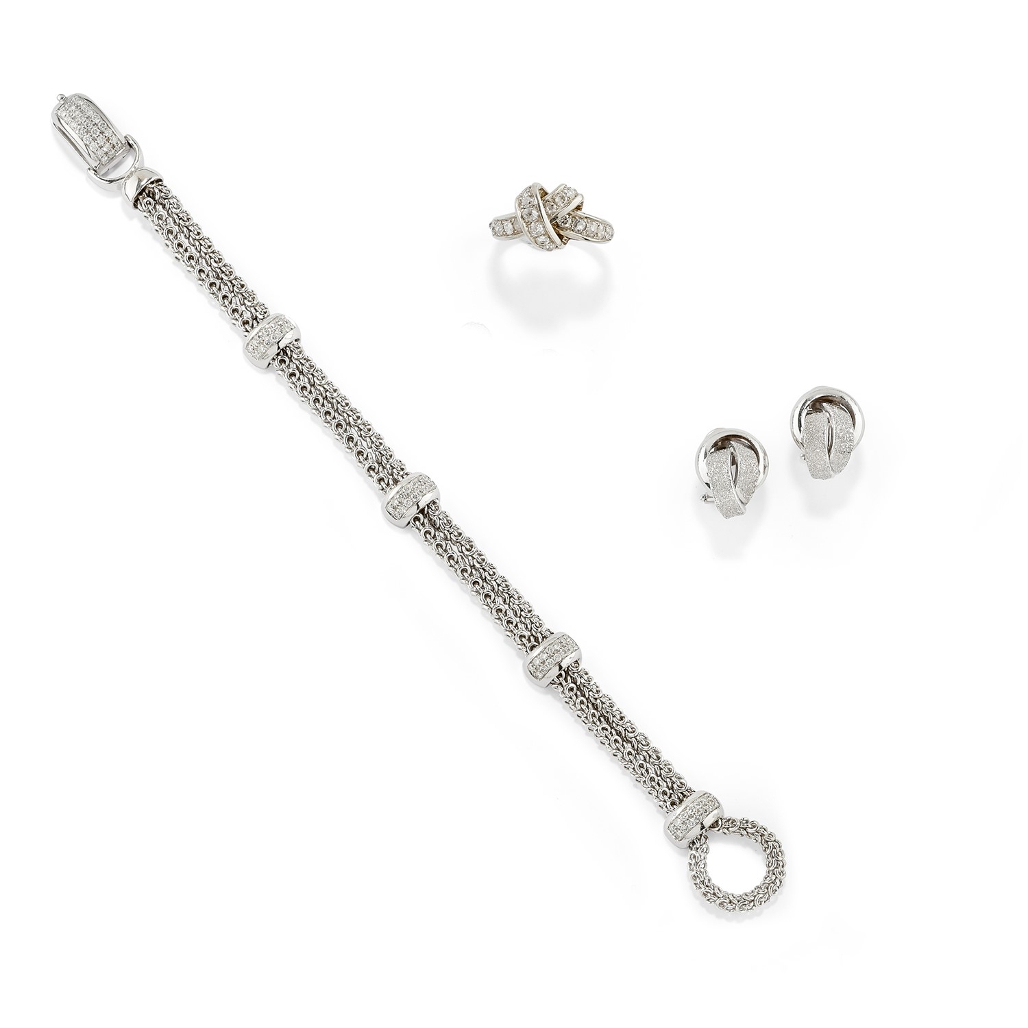 diamanti taglio brillante e vecchio, composto da collana, coppia di orecchini e anello.