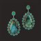 oro giallo 18K, diamanti taglio rotondo ct 4,00 ca, centrati da grandi gocce in labradorite entro contorno in smeraldi taglio rotondo ed ovale ct 8,30 ca.