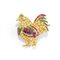 smeraldi, rubini, zaffiri e diamanti taglio brillante, a forma di galletto, difetti (un rubino presenta mancanza di materiale).