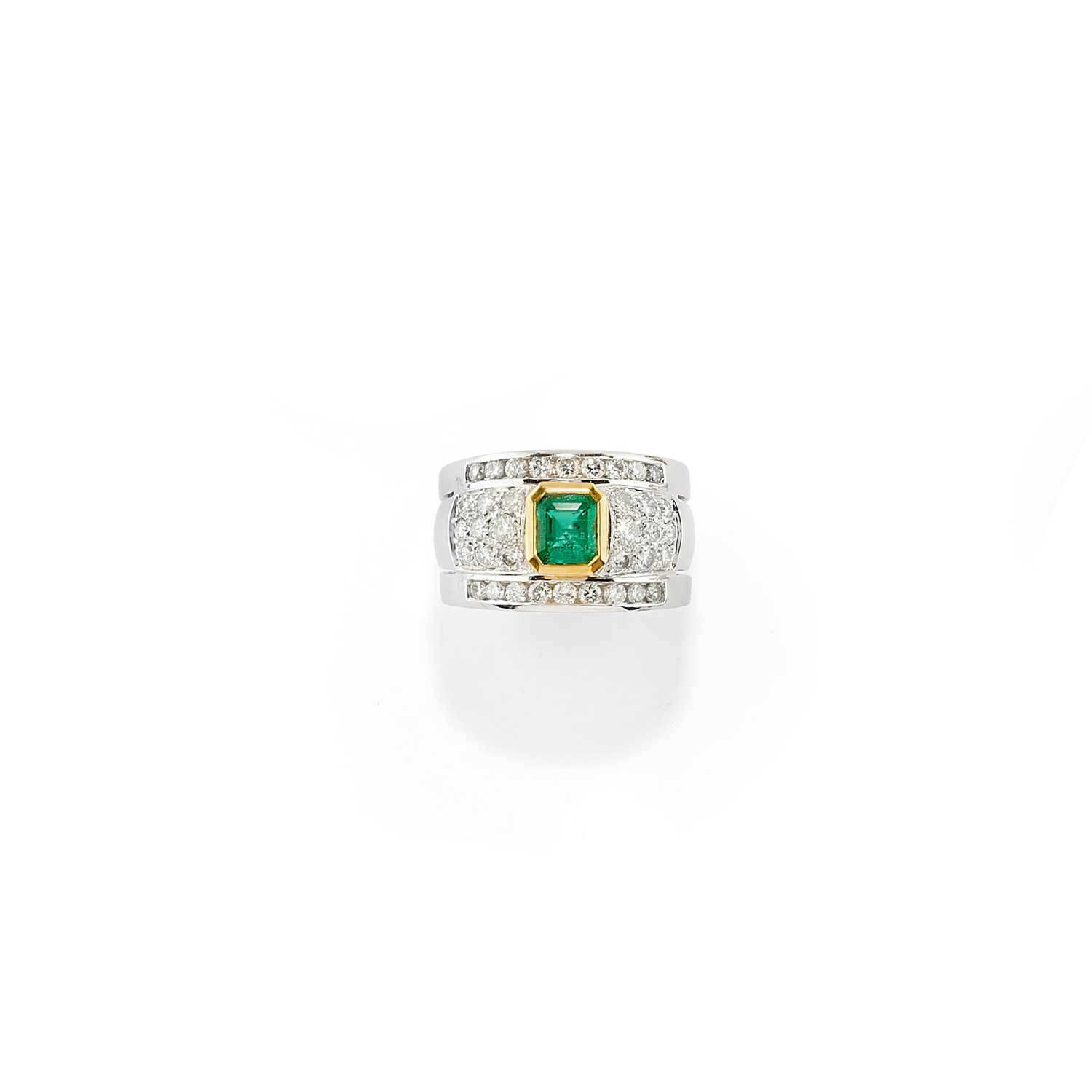 smeraldo taglio rettangolare a contorno ottagonale ct 1,00 ca e diamanti taglio brillante ct 1,20 ca.