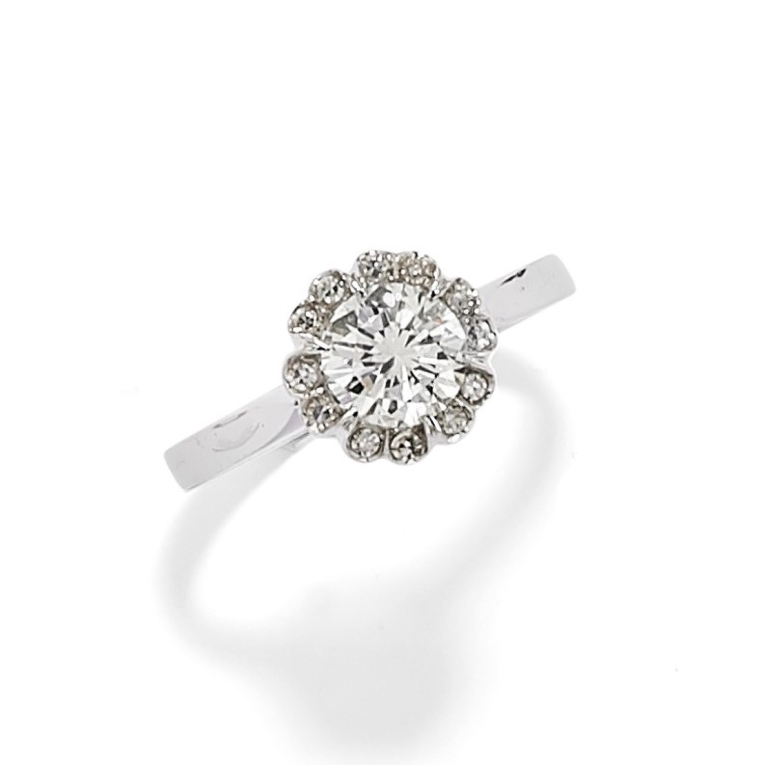 in oro bianco 18K e diamante taglio brillante ct 0,80 ca, a cestino.