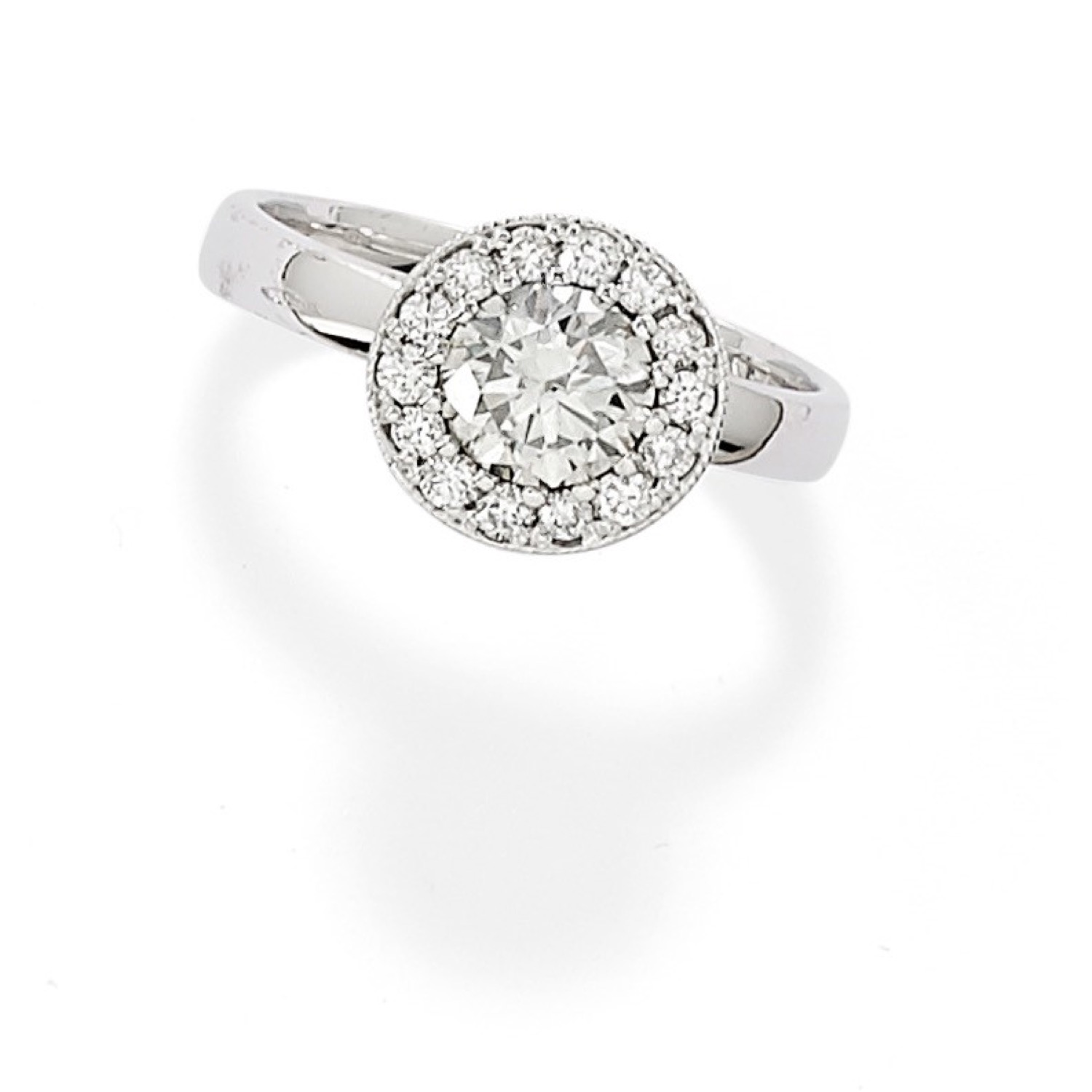 al centro un diamante taglio brillante ct 1,00 ca contornato da diamanti taglio brillante ct 0,25 ca.