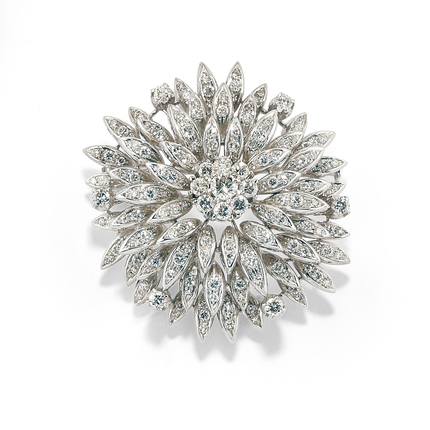 Spilla in oro bianco 18K e diamanti taglio brillante e huit-huit ct 5,00