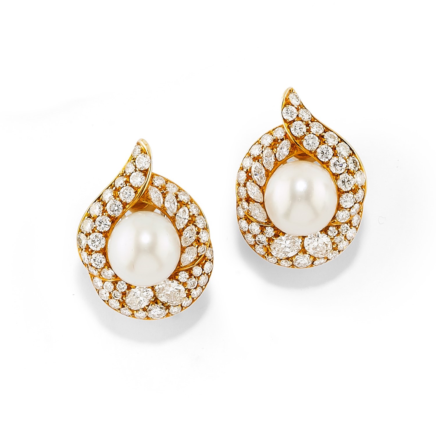 perle coltivate di mm 11,50/12,00, diamanti taglio rotondo, ovale e navette ct 7,00 ca.