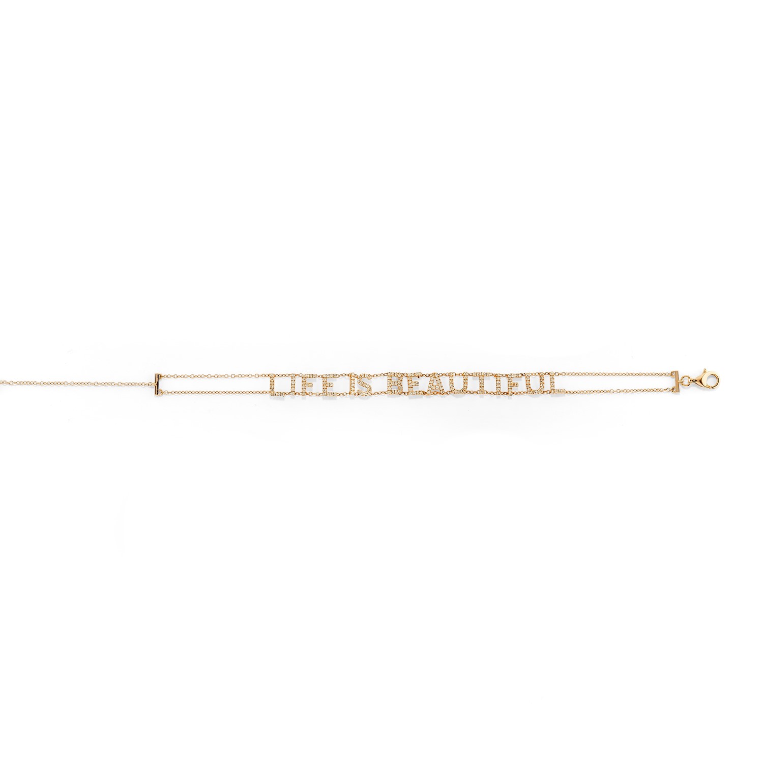 scritta "Life is beautiful" in diamanti taglio rotondo ct 0,50 ca.