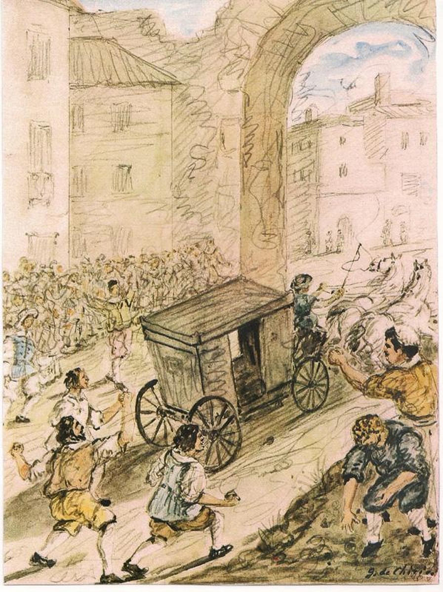 DE CHIRICO GIORGIO (1888 - 1978) Scena dai Promessi Sposi. Fotolitografia. Cm 53x38. D'apres. Ritoccata a mano.