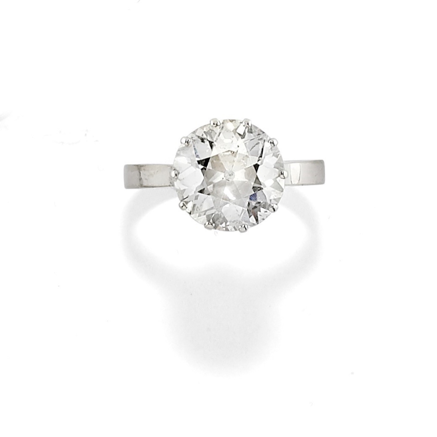 in oro bianco 18K e diamante taglio vecchio ct 3,90 ca, prob. colore J/K, purezza P.