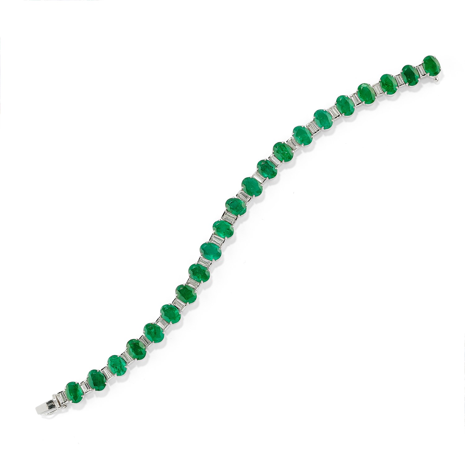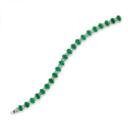 smeraldi taglio ovale ct 30,00 ca e diamanti taglio tapered baguette ct 3,00 ca.