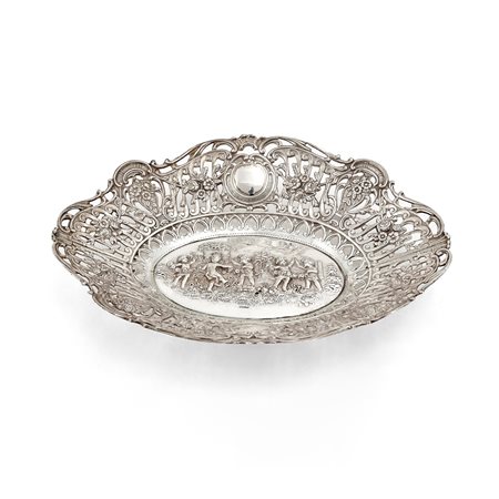 interamente traforato con decoro floreale, al centro putti e fiori.