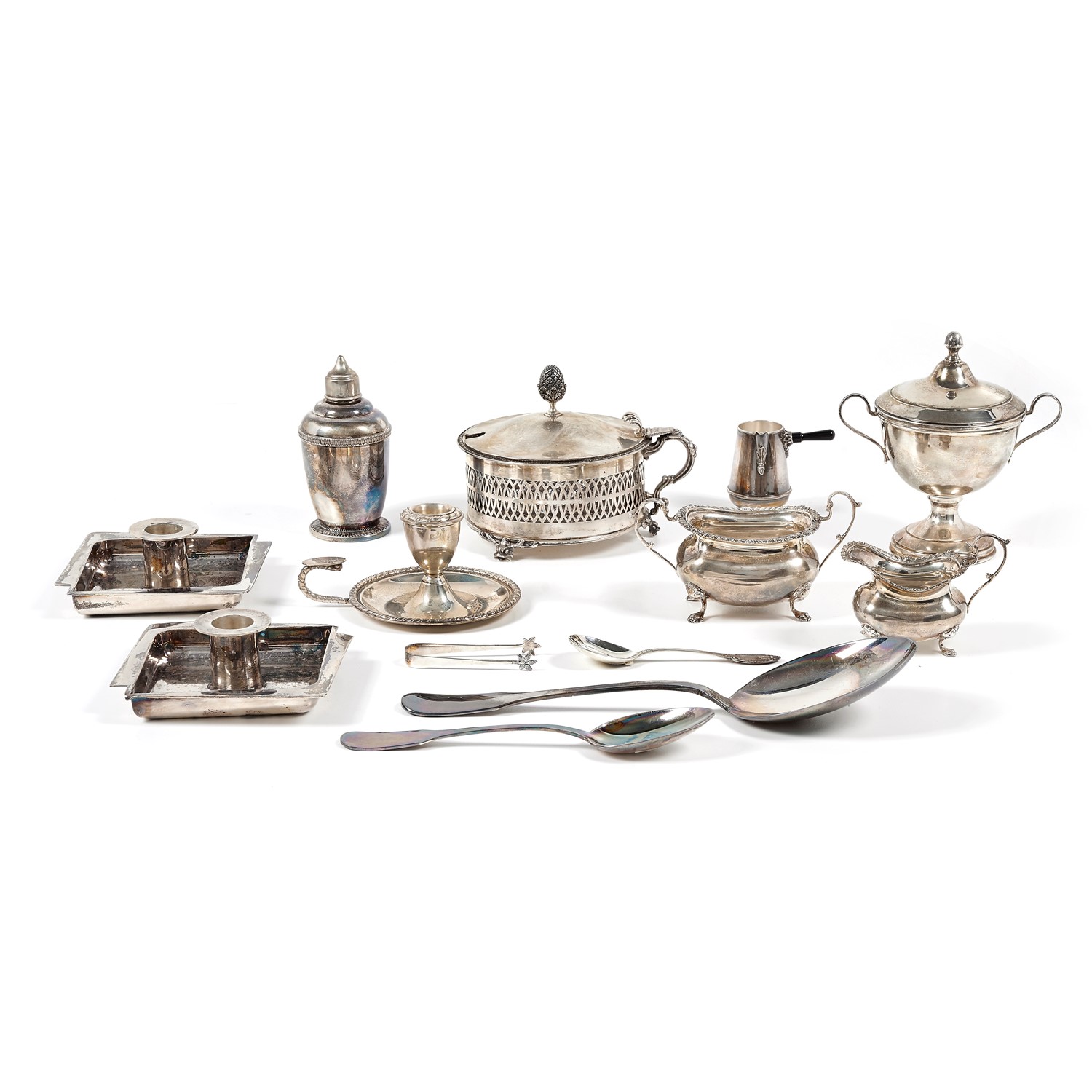 Lotto di argenti composto da diciannove oggetti di varie forme e decori
