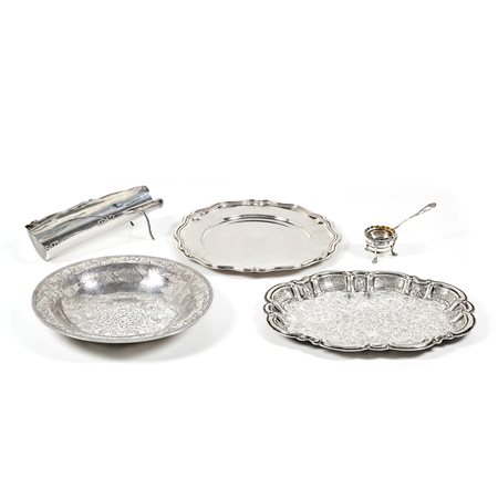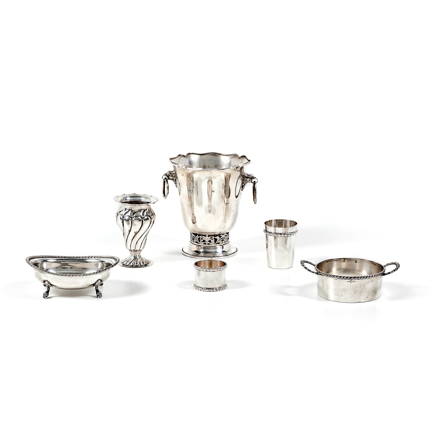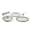 un posacenere, un vasetto, un portatovaglioli, un secchiello, un bicchierino, un filtro per tè, un portabottiglia, una salierina e tre piatti.