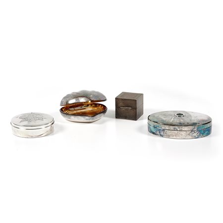 composto da un accendino da tavolo di Gucci e tre scatole di varie forme e decori, difetti.