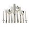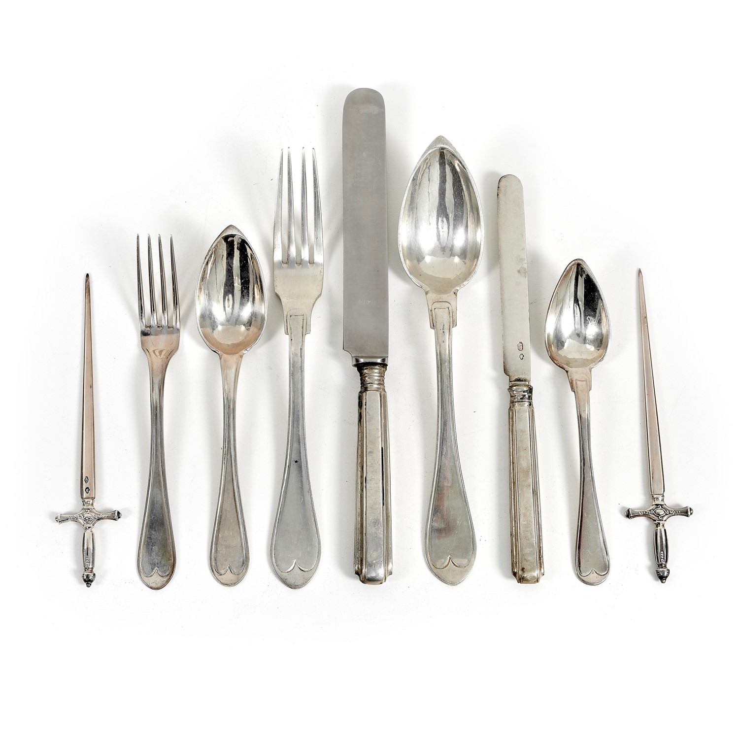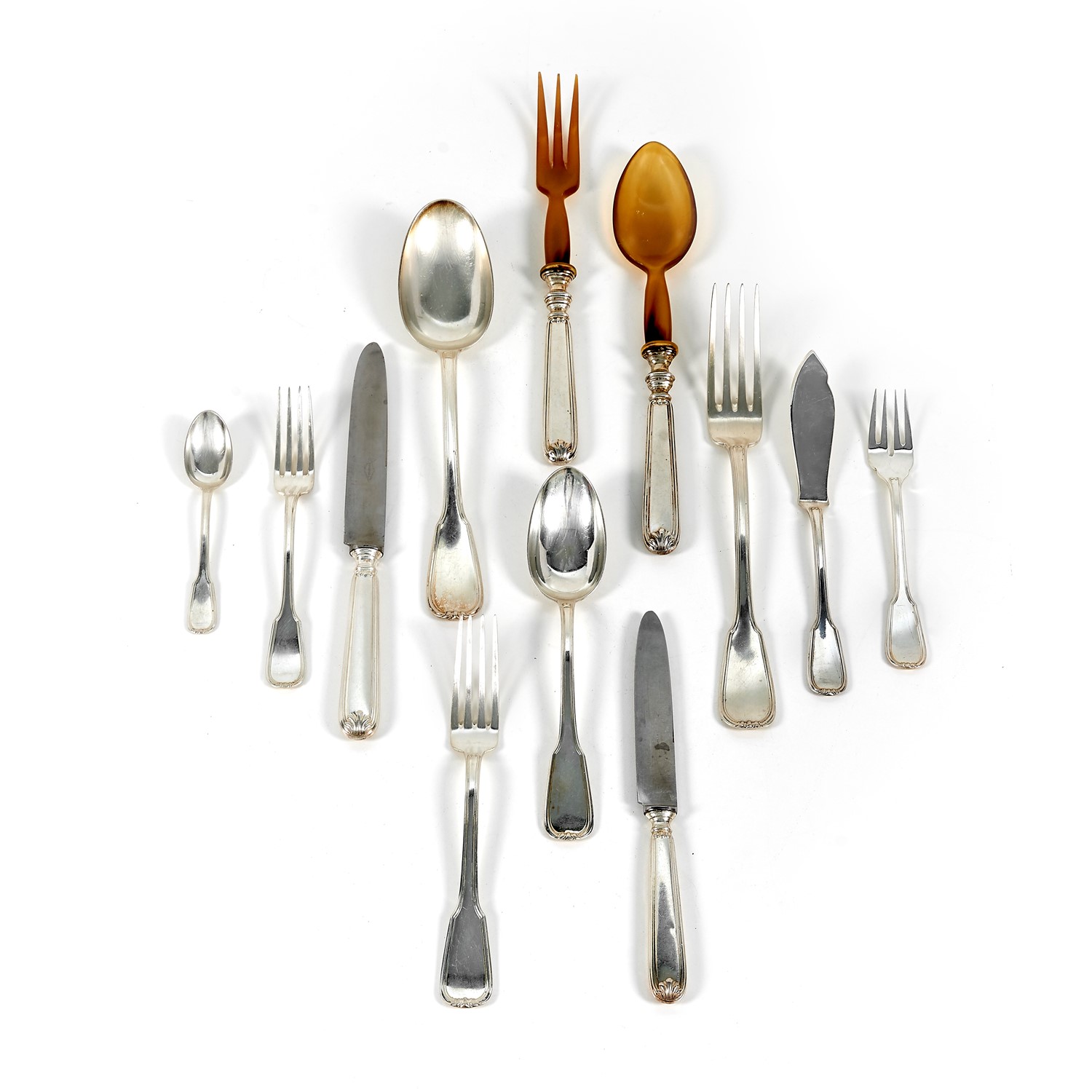 Primo servizio: ventiquattro forchette grandi, dodici forchette piccole, ventiquattro coltelli grandi, dodici coltelli da pesce, dodici forchette pesce, dodici cucchiai grandi, dodici cucchiaini piccoli e quattro serviti.<