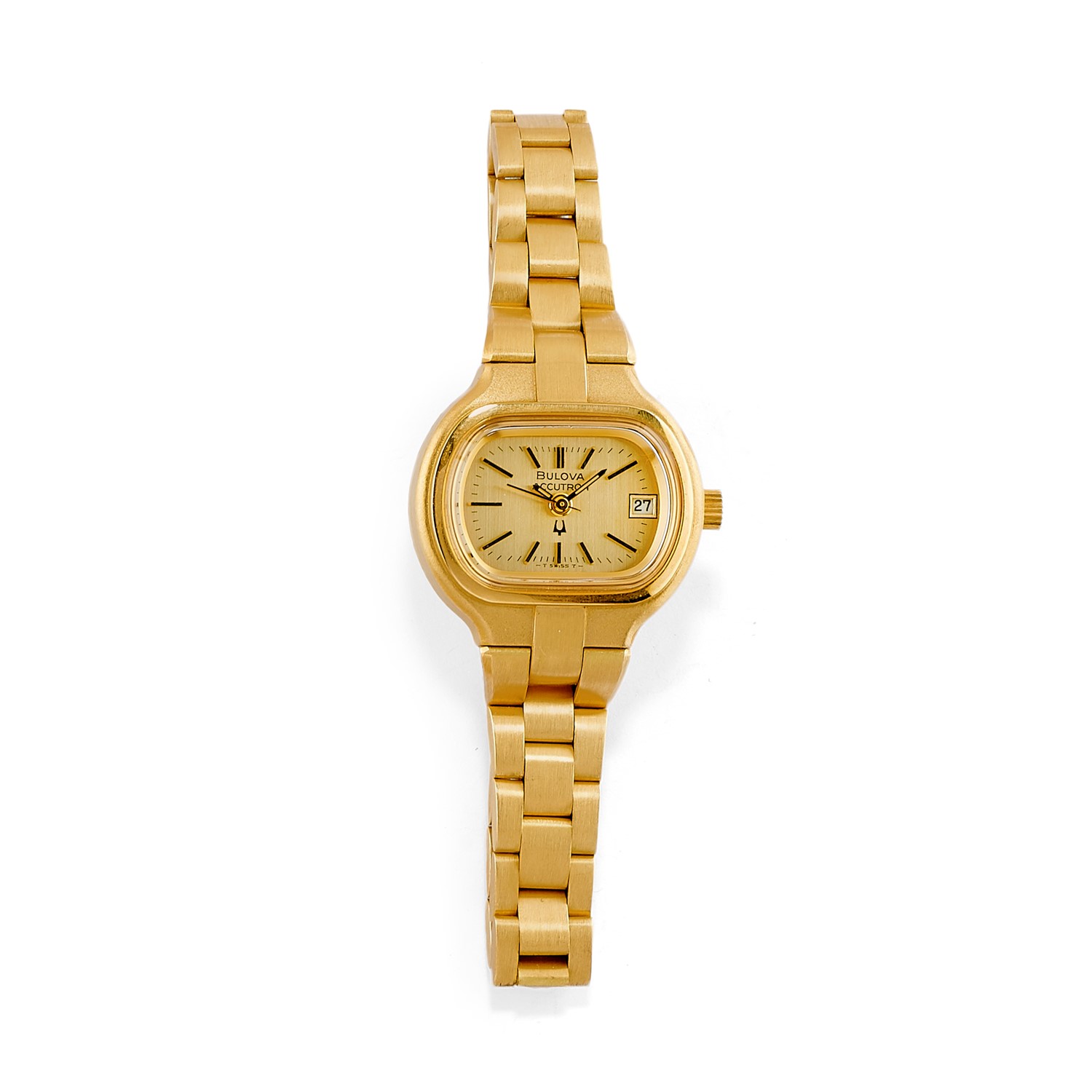 in acciaio e oro giallo 18K, cassa ovale, quadrante champagne con indici applicati, data al tre, movimento elettronico a diapason, con astuccio e garanzia.