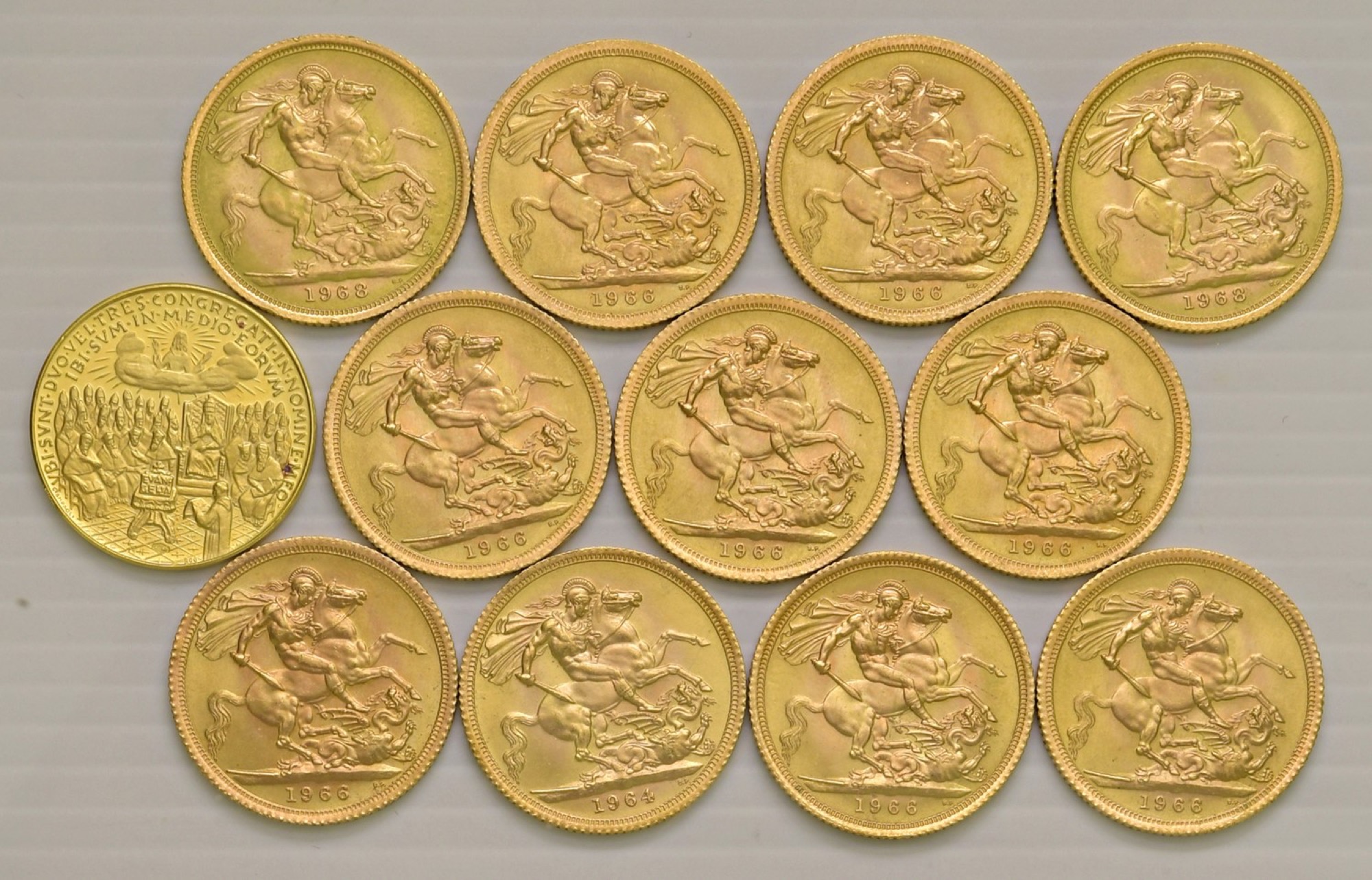 11 monete in oro e una medaglia di Giovanni XXIII in oro, coniazione a cura di Numismatica italiana (gr. 7,00, 900/1000).
