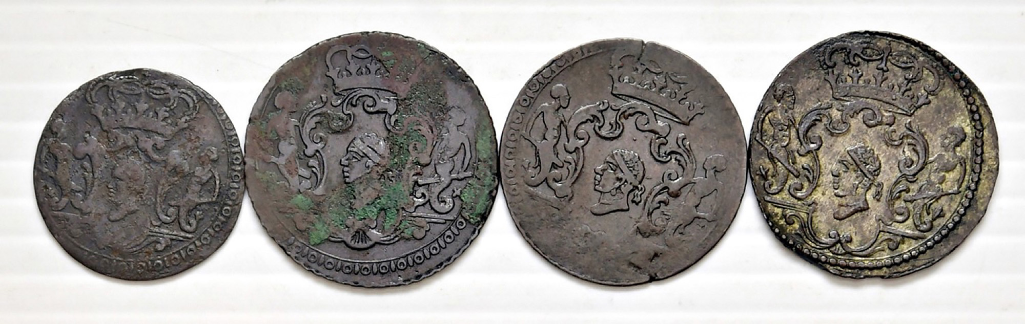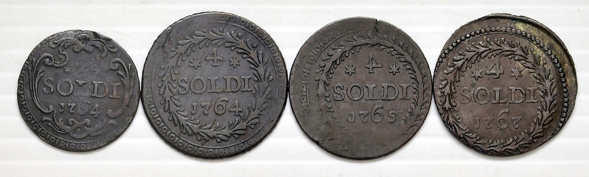 4 monete in mistura: 4 soldi 1764, 1765 e 1767. 2 soldi 1764. MIR 4/3, 4/4, 4/6 e 6. Rare.