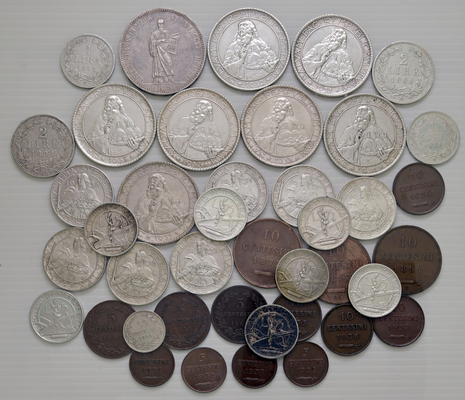 Collezione completa dal 1864 al 1938, tranne la moneta da 20 lire 1938 e le due monete in oro. Fa parte del lotto una prova 20 lire 1933.