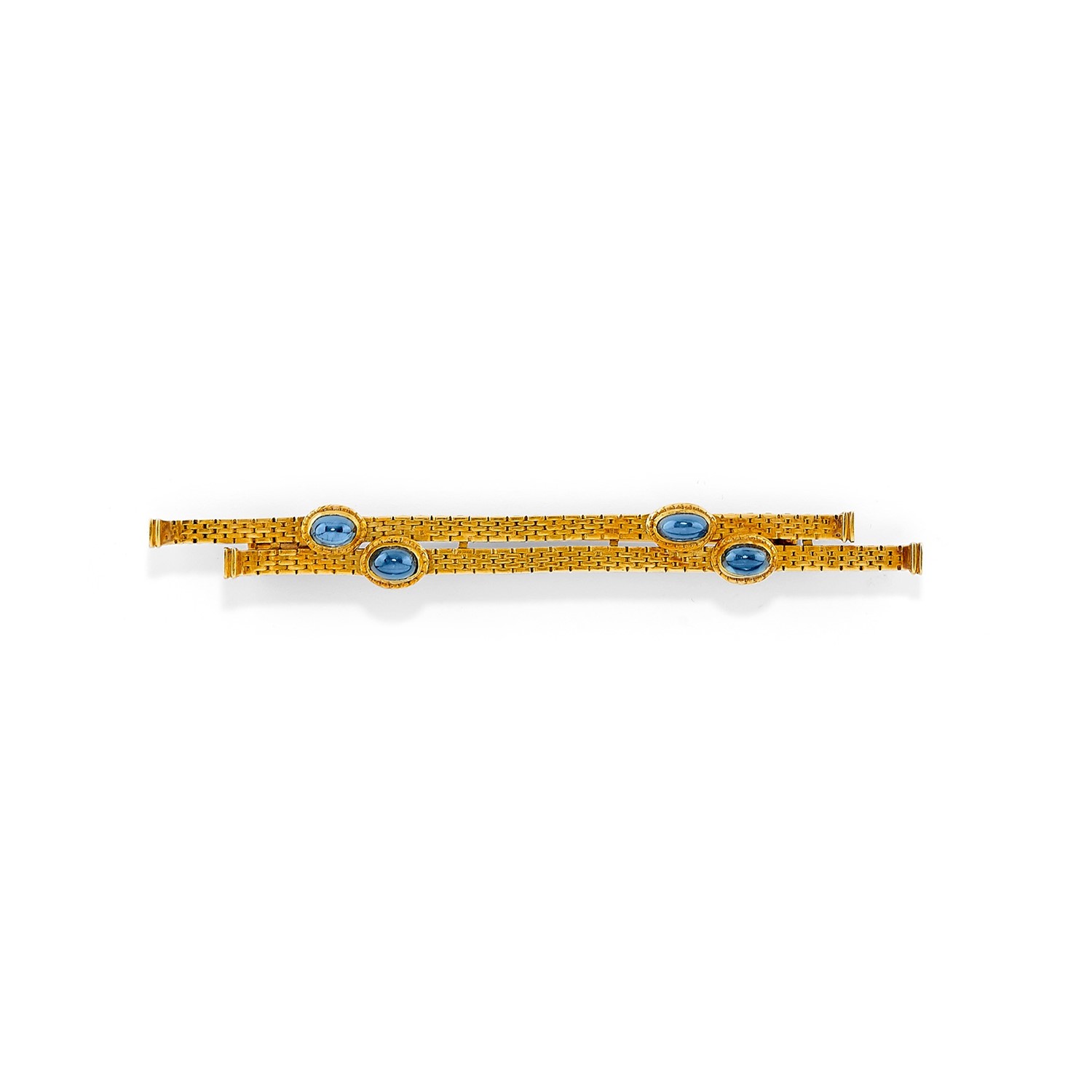 in oro giallo 18K e zaffiri taglio ovale cabochon.