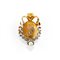oro giallo 18K, perla e diamanti taglio rosa, realizzata a scudo con iniziali.