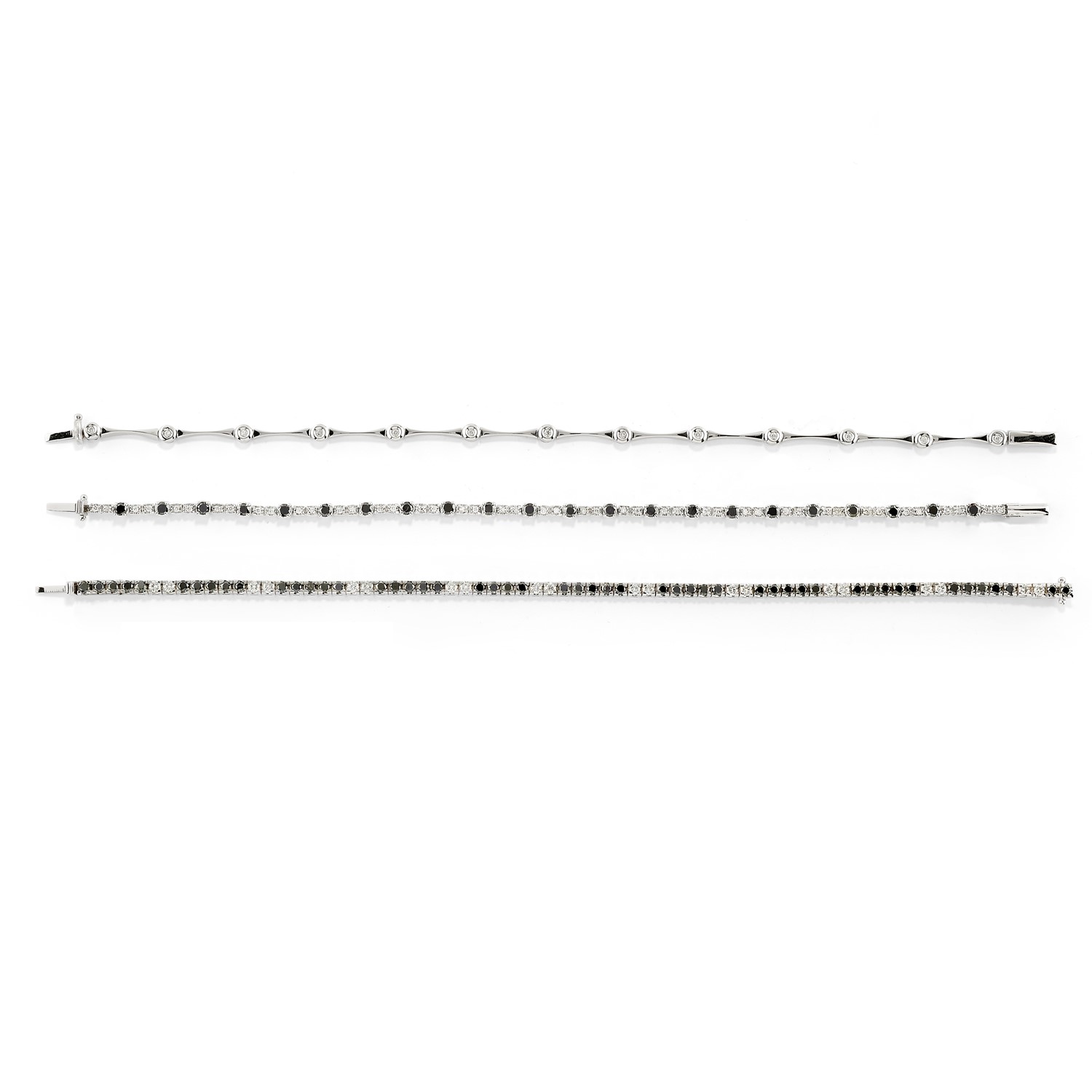 Lotto 807 | Tre bracciali tennis in oro bianco 18K