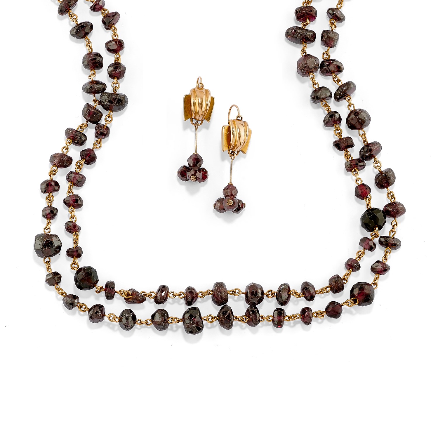 Lotto di gioielli in oro giallo 18K e granati sfaccettati