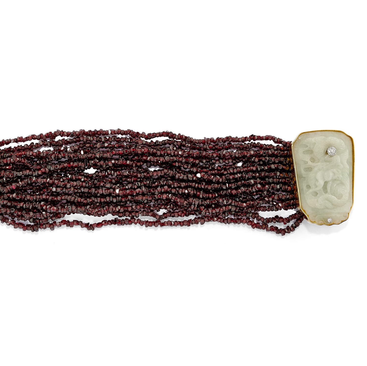 granati, giadeite e diamanti, realizzato a diciannove fili.
