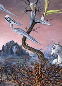 MARTINI ALBERTO (ODERZO 1876 - MILANO 1954 ) “Fiori di fuoco nella vallata barocca” 1933 Olio su masonite cm. 40x30 Firmato in basso a sinistra. Pubblicato su:"Alberto Martini", Spazio Immagine (Mi).