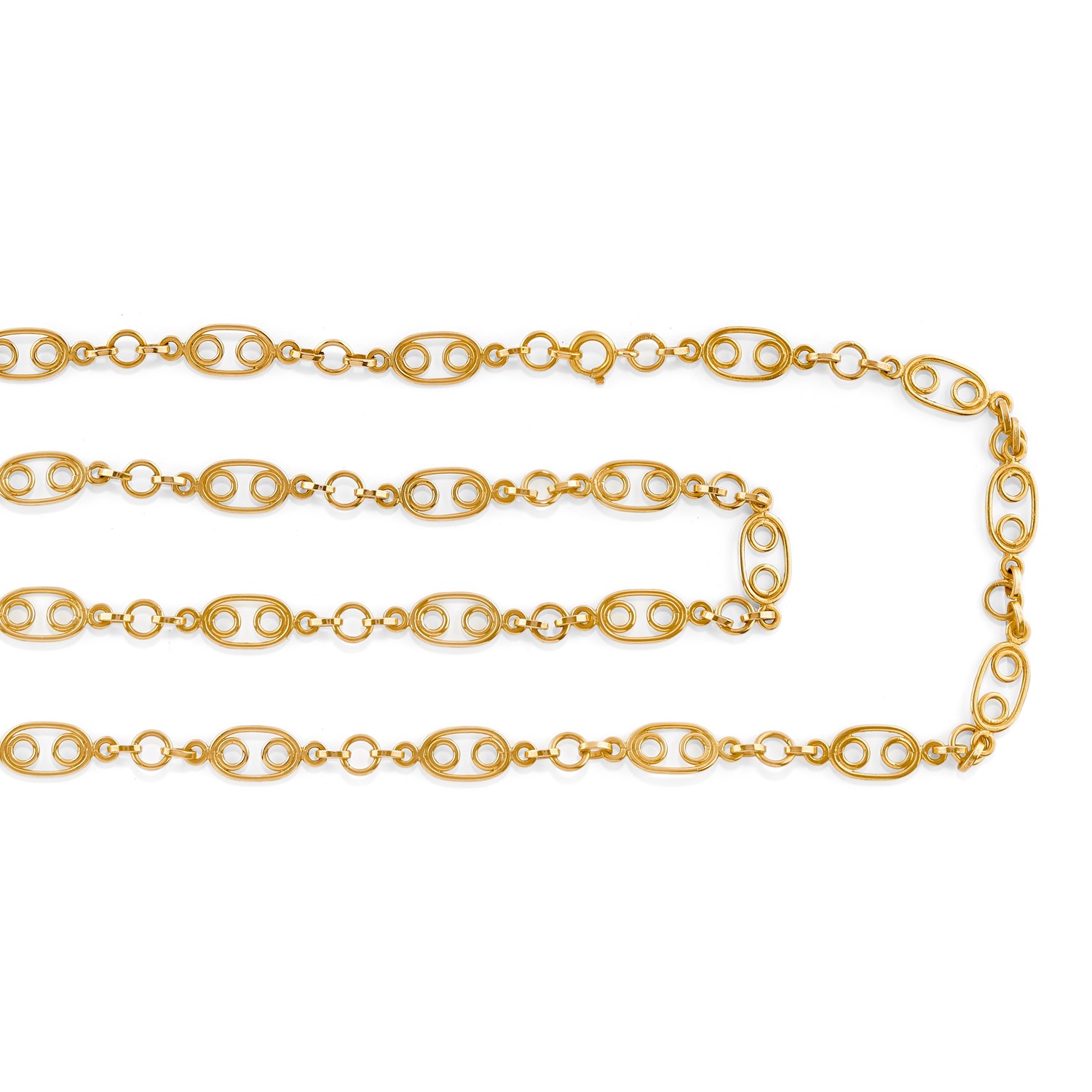 Collana in oro giallo 18K con motivi ovali e rotondi