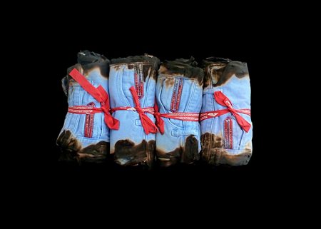 Berenard Aubertin Jeans bruciati su plexiglass 50x70x12 Unlimited 2011 Autentica Aubertin