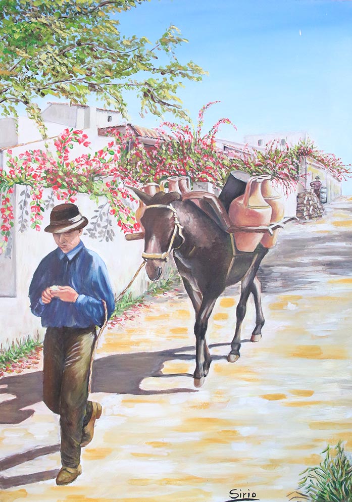 Evira Sirio Tecnica mista su tela 70x50 Il ritorno dalla fonte 2015 Autentica dell'artista su foto Firmato in basso a destra