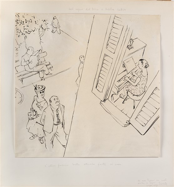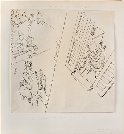 Giuseppe Novello "Nel regno del disco e della radio" disegno a china su carta (
