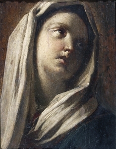 SCUOLA VENETA DEL '700 “Viso di Santa” Olio su tavola cm. 25x19 Timbro al retro.