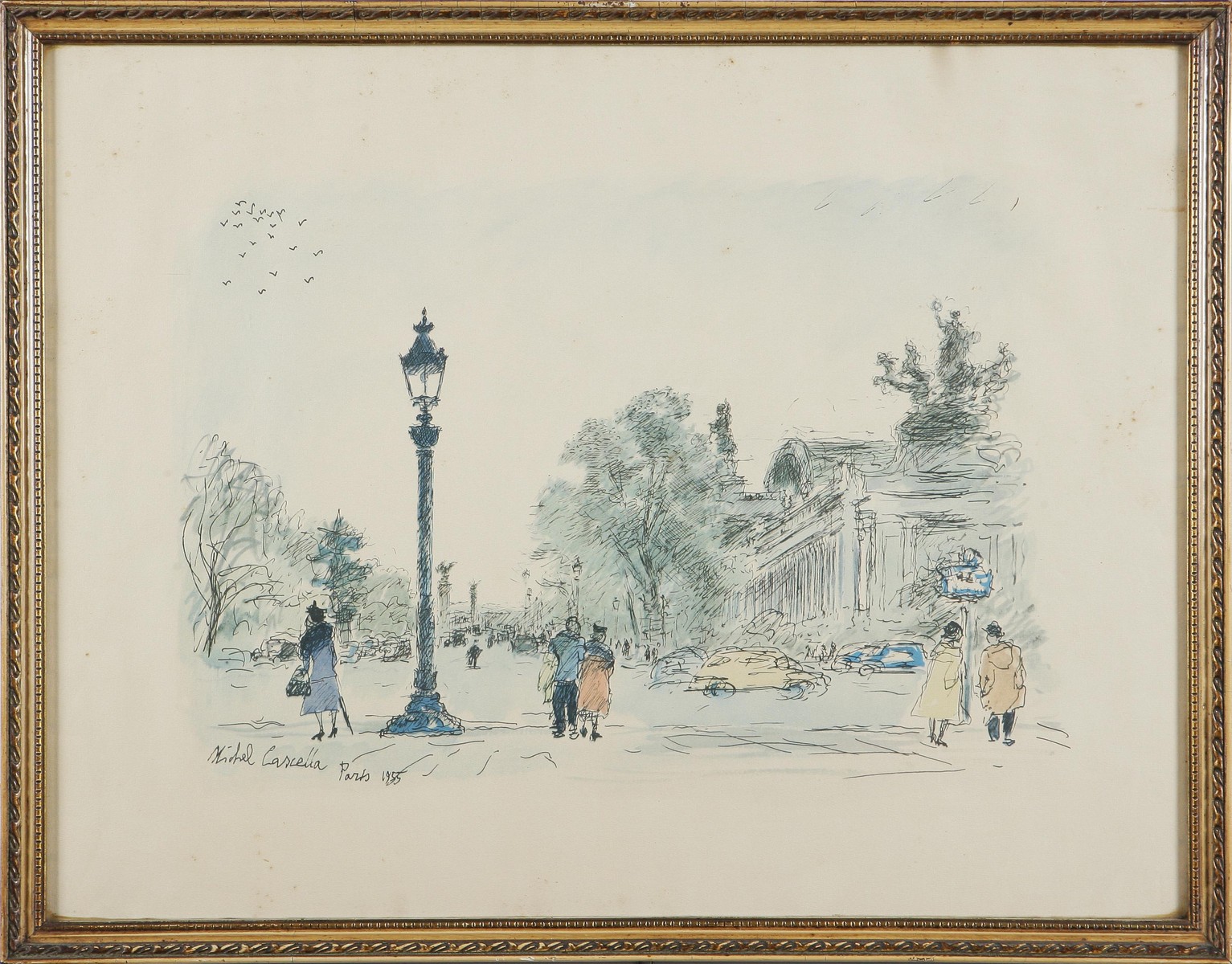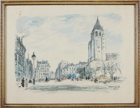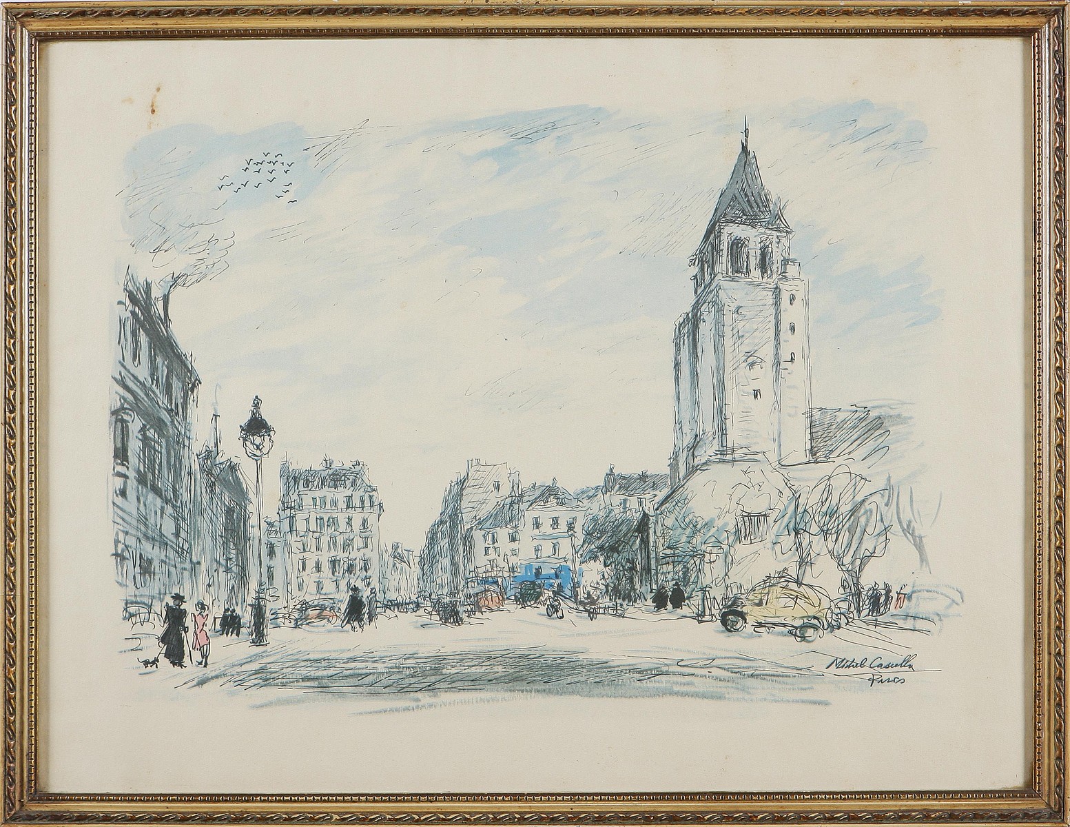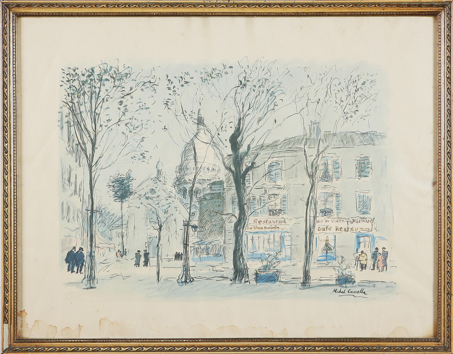 CASCELLA MICHELE (1892 - 1989) Lotto formato da tre litografie. Litografia. 1. Paris, 28 x 39 cm, 1955, firma, data e titolo in basso a sinistra, al retro timbro Leonardo Giovanni, Casa della Cornice, via Garibaldi 38, Rimini. 2. Senza titolo, 30 x 40,5 cm, firma in basso a destra, al retro timbro Leonardo Giovanni, Casa della Cornice, via Garibaldi 38, Rimini. 3. Paris, 31 x 42 cm, firma e titolo in basso a destra, al retro timbro Leonardo Giovanni, Casa della Cornice, via Garibaldi 38, Rimini.