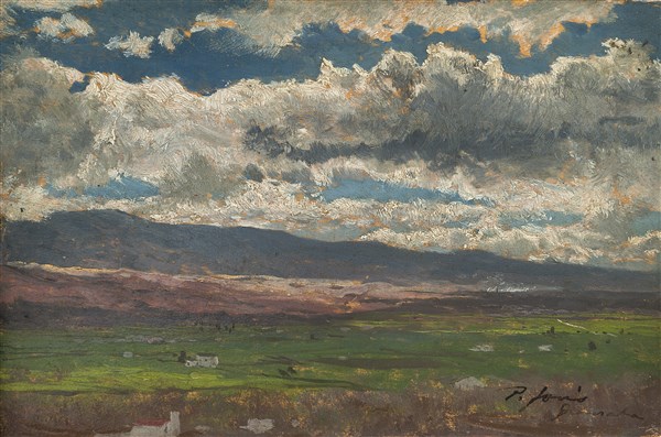 Pio Joris "La Vega da Granada" olio su tavola (cm 13x19) Firmato e locato in ba