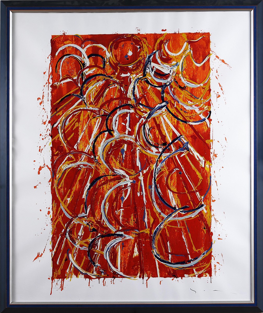 SCHIFANO MARIO (1934 - 1998) Nella vetrata rossa. Litografia. Cm 120x100. Tiratura: LXXVI/C. Tiratura e firma in basso a matita. Provenienza: Telemarket s.p.a., brescia.
