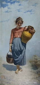 Lotto 17 | DE STEFANI “Figura con anfora” Olio su masonite cm. 93x43 Firmato in basso a...