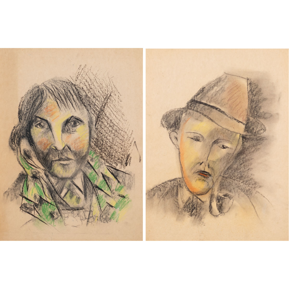 Lotto 10 | Pittore russo 1930 circa 60x45 cm. "Studio per ritratto", coppia di tecniche...