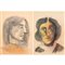 "Studio per ritratto", coppia di tecniche miste su carta, entro cornici