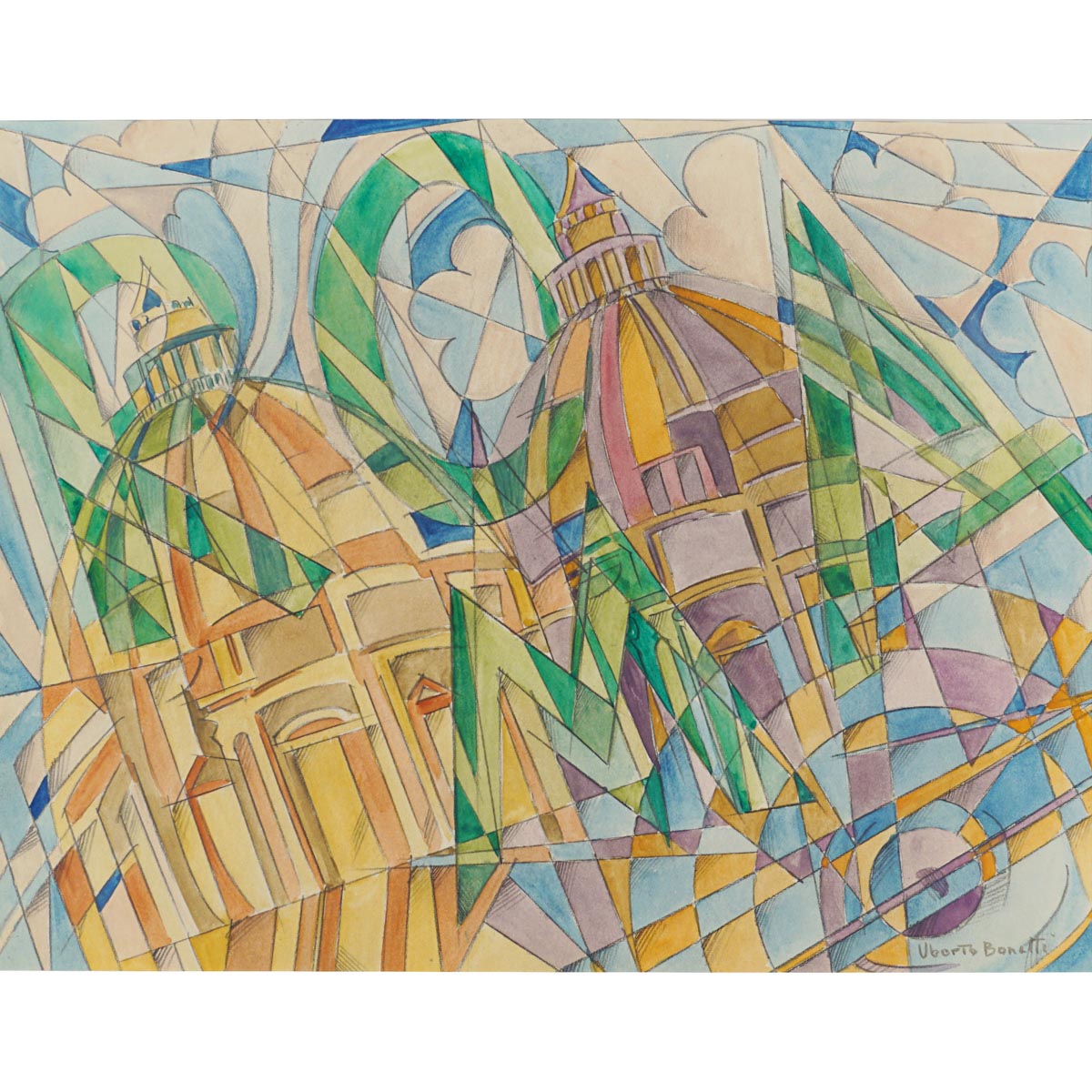 Uberto Bonetti Viareggio 1909 - 1993 24x31 cm. "Aerovista di Roma", tecnica...