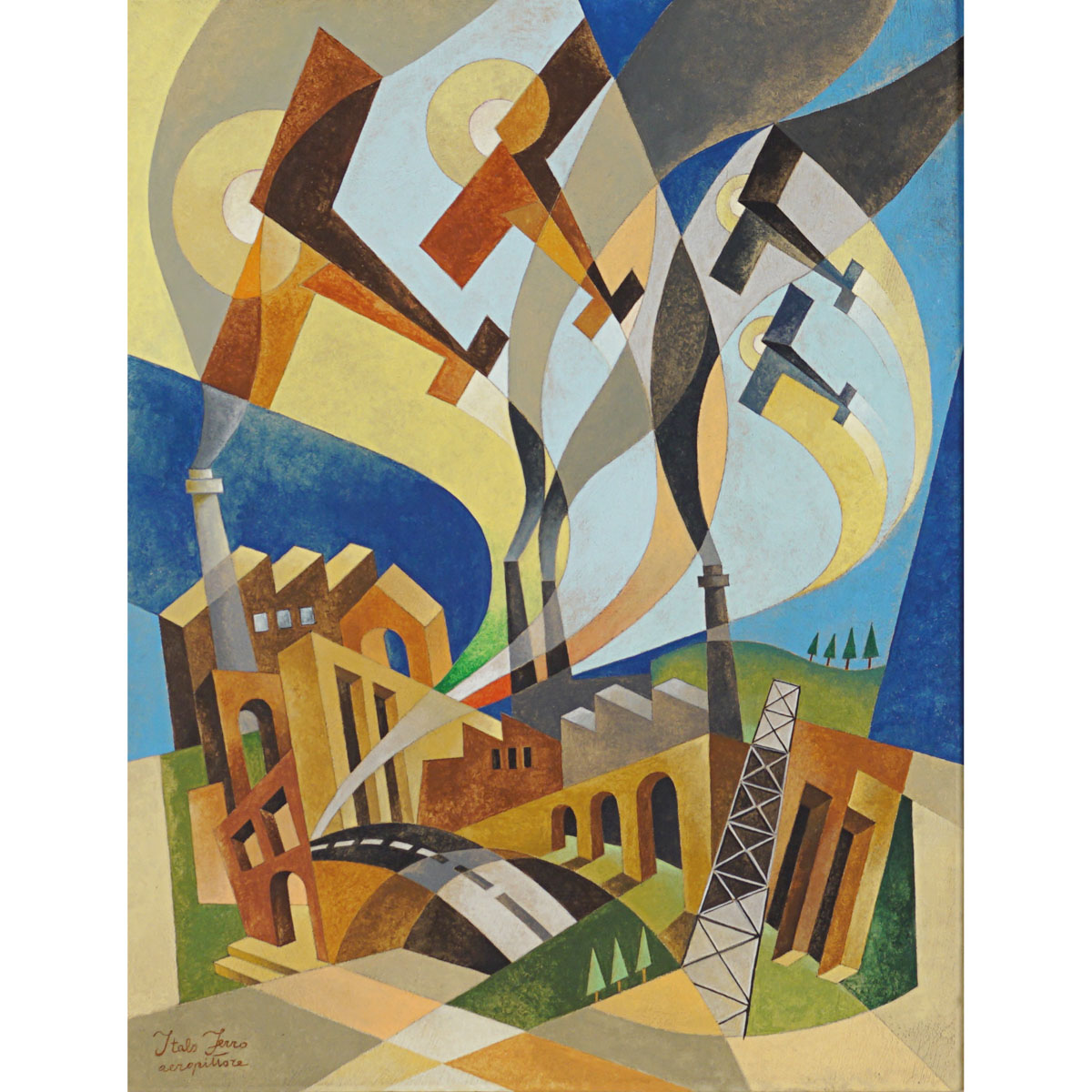 Italo Ferro Torino 1880 - 1934 44,5x35 cm. "Aeropittura", olio su tela,...