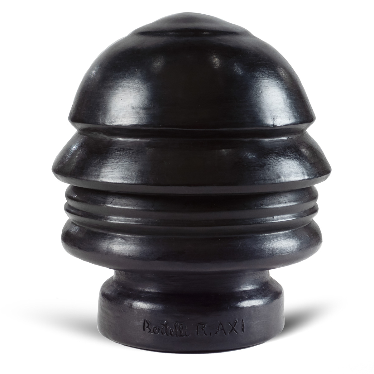 "Profilo continuo", 1933, scultura in terracotta dipinta a smalto nero, firmata e datata Bertelli R. A XI sulla base