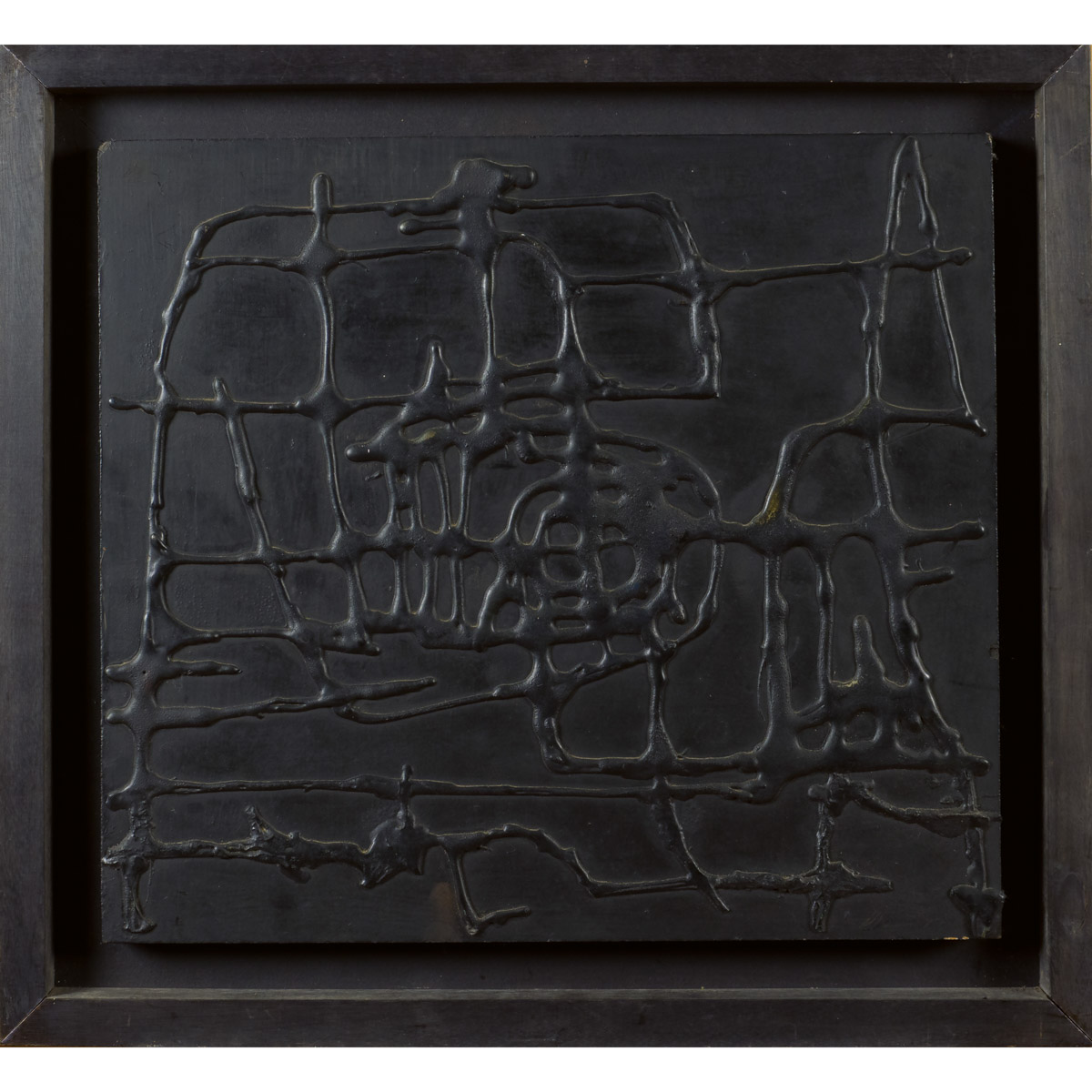 "Rilievo nero", colla a caldo e tempera su tela, entro cornice