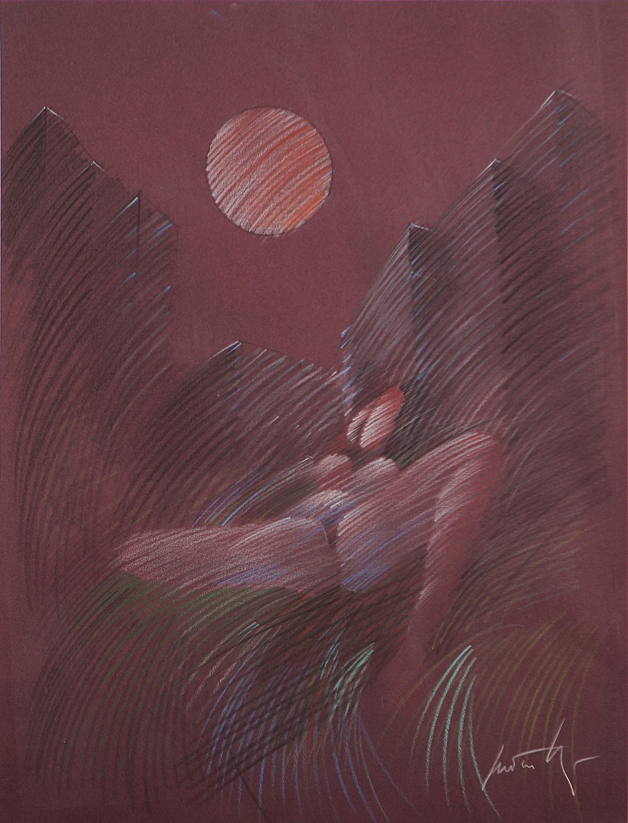 PEVERELLI CESARE (1922 - 2000) Senza titolo. Pastelli su carta. Cm 65x50. Firma in basso a destra.