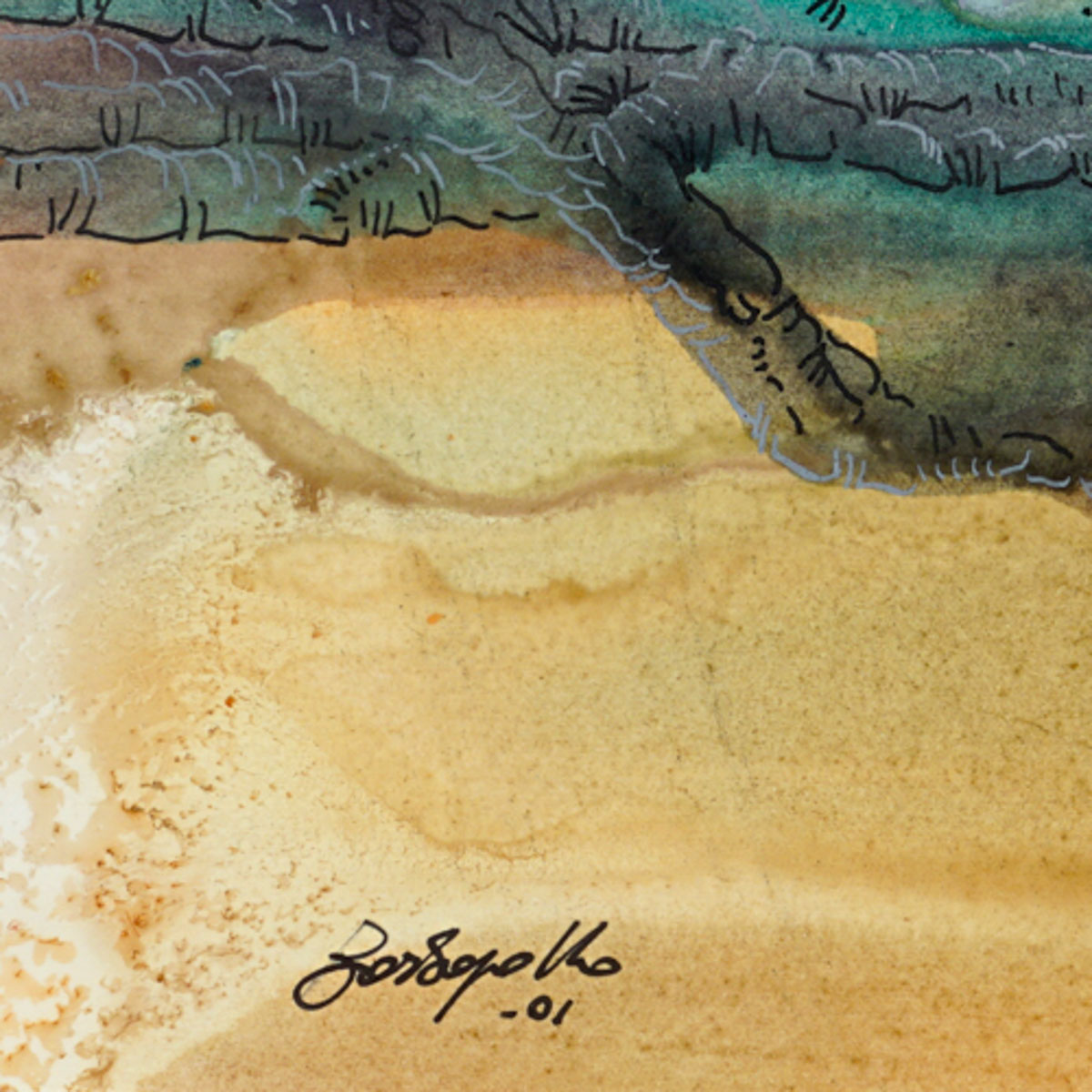 "Senza titolo", 2001, tecnica mista su carta, firmata e datata in basso a sinistra, entro cornice