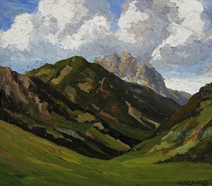 SARTORELLI CARLO (Venezia 1895 - Milano 1956 ) “Verdi valli d'Intelvi” 1932 (?) Olio su tavola cm. 40x35 Firma ed anno in basso a destra.