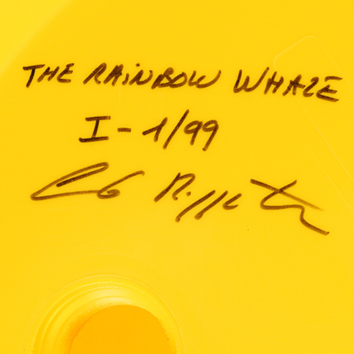 "The rainbow whale", L 120 colore giallo edizione Italia ( I ) es. 1/99, scultura in plastica, firmata, numerata e titolata sotto la base.