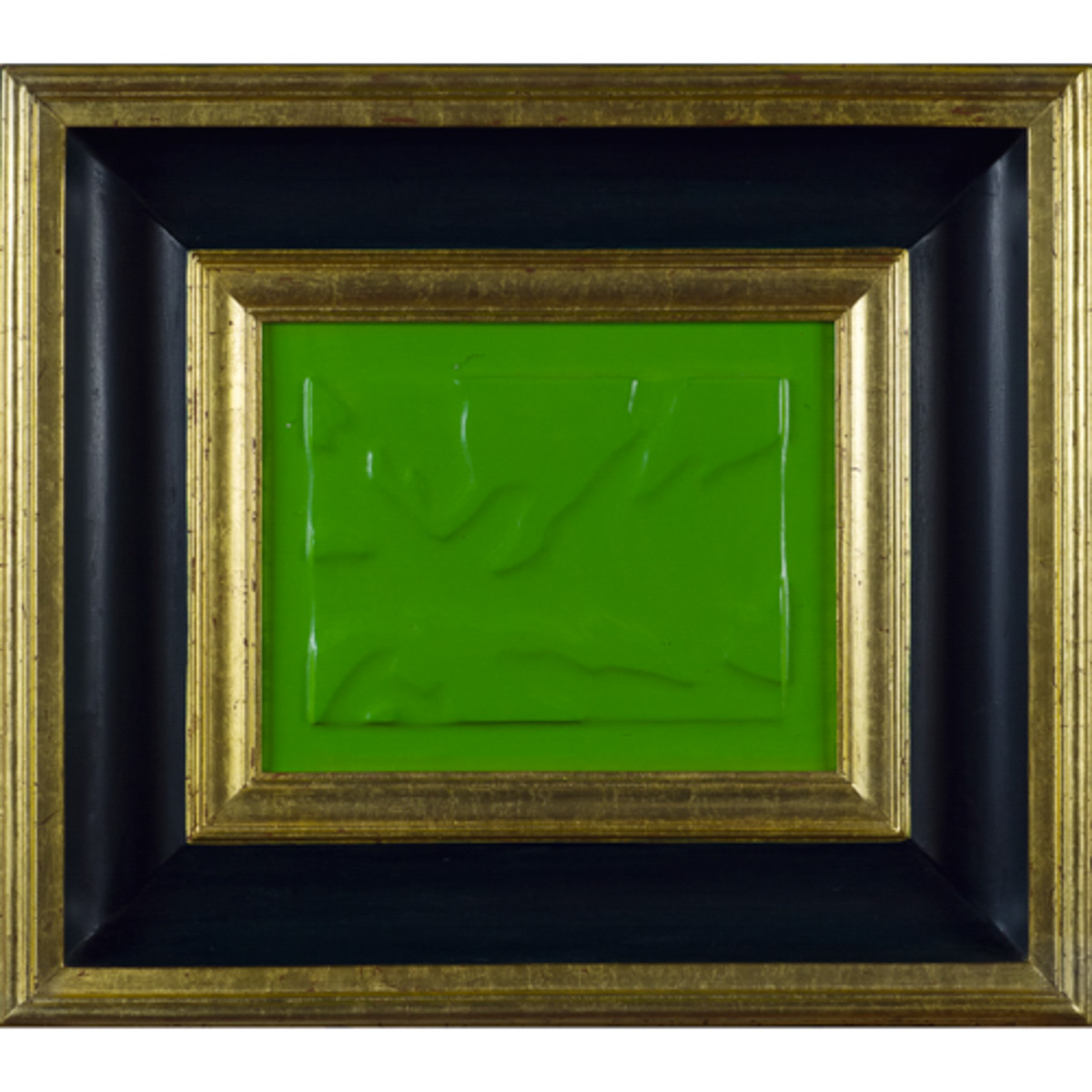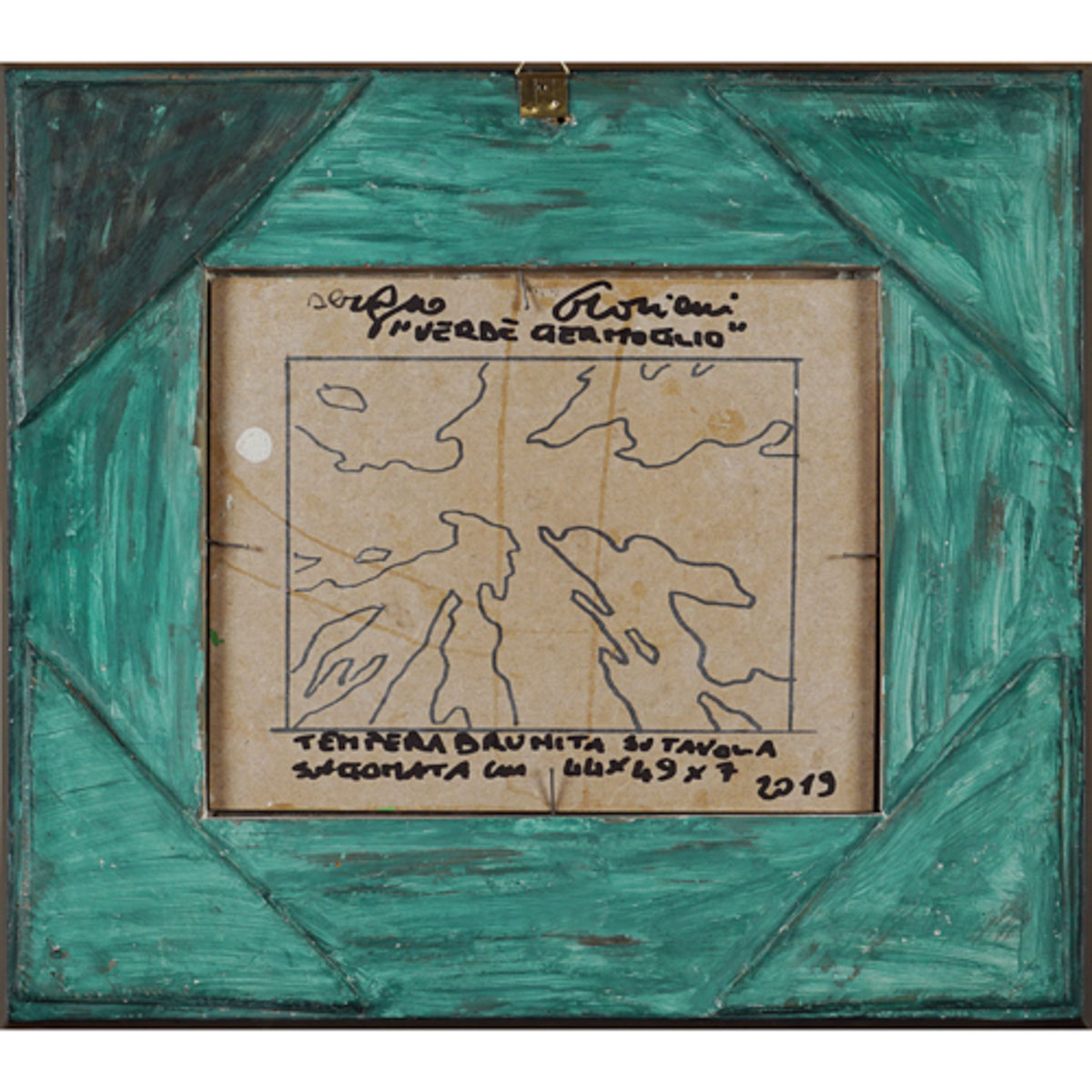 "Verde germoglio", 2019, tempera brunita su tavola sagomata, firmata, datata e titolata sul retro. Autentica dell'artista su fotografia